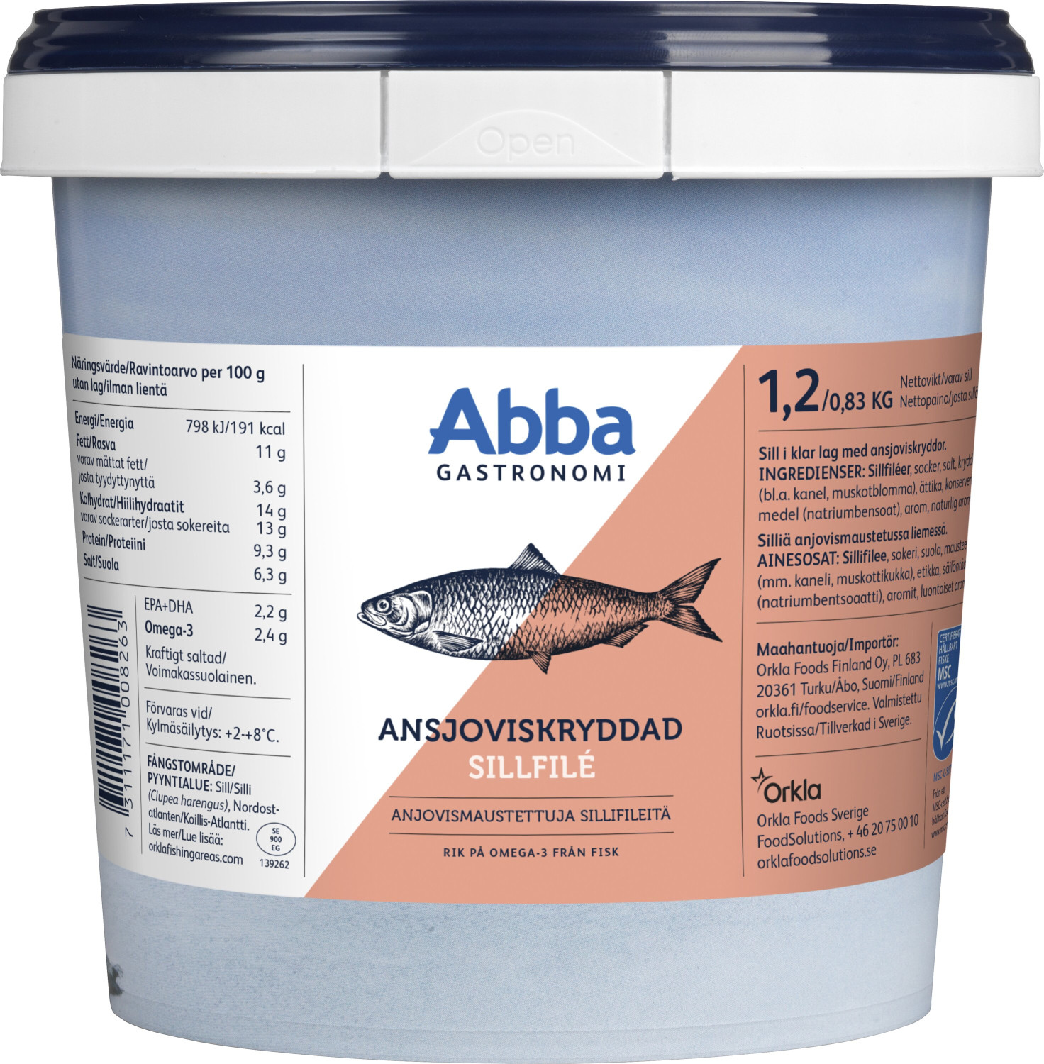 - Abba Gastronomi MSC anjovismaustettu sillifilee 1,2/0,83kg