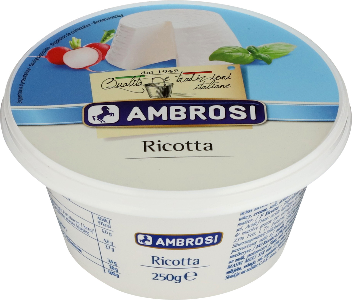 Ricotta on italialainen tuorejuusto, joka sopii käytettäväksi erityisesti pastaruuissa ja piirakoissa. Sopii sekä suolaiseen että makeaan ruuanvalmistukseen.