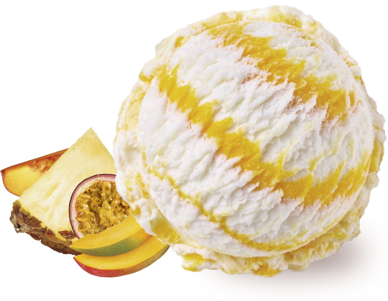 Ainesosat: Rasvaton MAITO, vesi, glukoosisiirappi, sokeri, glukoosi-fruktoosisiirappi, kookosrasva, ananasmehu tiivisteestä (3,5%), mangosose (2,5%), passionhedelmämehu (2,5%), persikkasose (2,5%), herajauhe (MAITO), stabilointiaineet (guarkumi, johanneksenleipäpuujauhe, tarakumi, karrageeni), emulgointiaineet (rasvahappojen mono- ja diglyseridit [kasviperäinen]), värit (karotenoidit), happamuudensäätöaine (sitruunahappo), aromi, luontainen vanilja-aromi. Saattaa sisältää MANTELIA, HASSELPÄHKINÖITÄ, SAKSANPÄHKINÖITÄ ja PISTAASIPÄHKINÖITÄ.