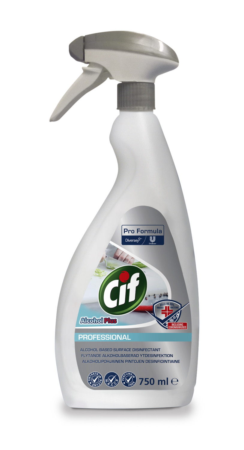 - Cif Professional Alcohol Plus 750ml Alkoholipohjainen pintojen desinfiointiaine