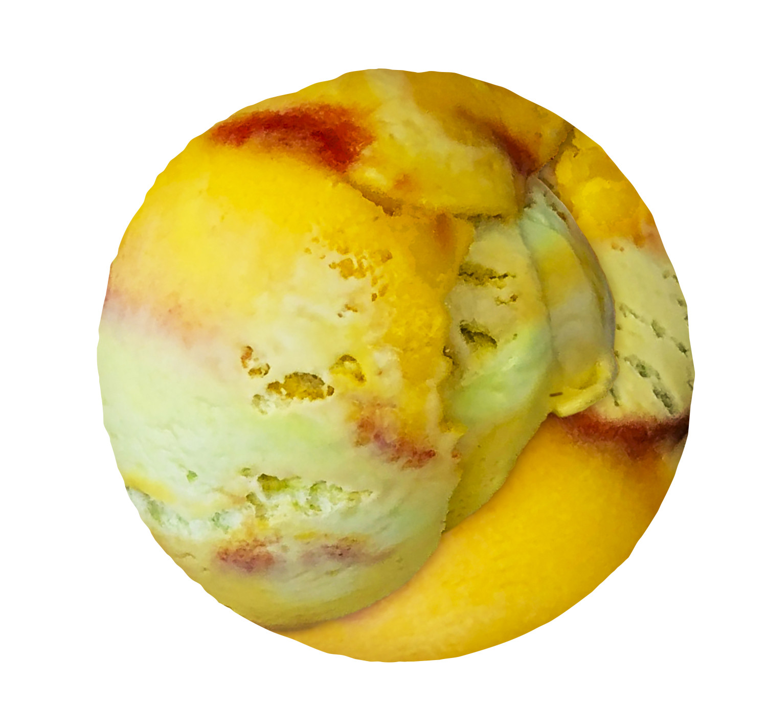 Ainekset: Vesi, rasvaton MAITO jauheesta (Suomi), glukoosisiirappi, dekstroosi, KERMA (Suomi), sokeri, stabilointiaineet (E412, E410), värit (E160a, E163, E161b), happamuudensäätöaineet (E330, E331), emulgointiaine (E471), spirulina- ja safloritiiviste, inverttisokerisiirappi, sakeuttamisaine (E440), luontaiset aromit. SAATTAA SISÄLTÄÄ PÄHKINÄÄ.