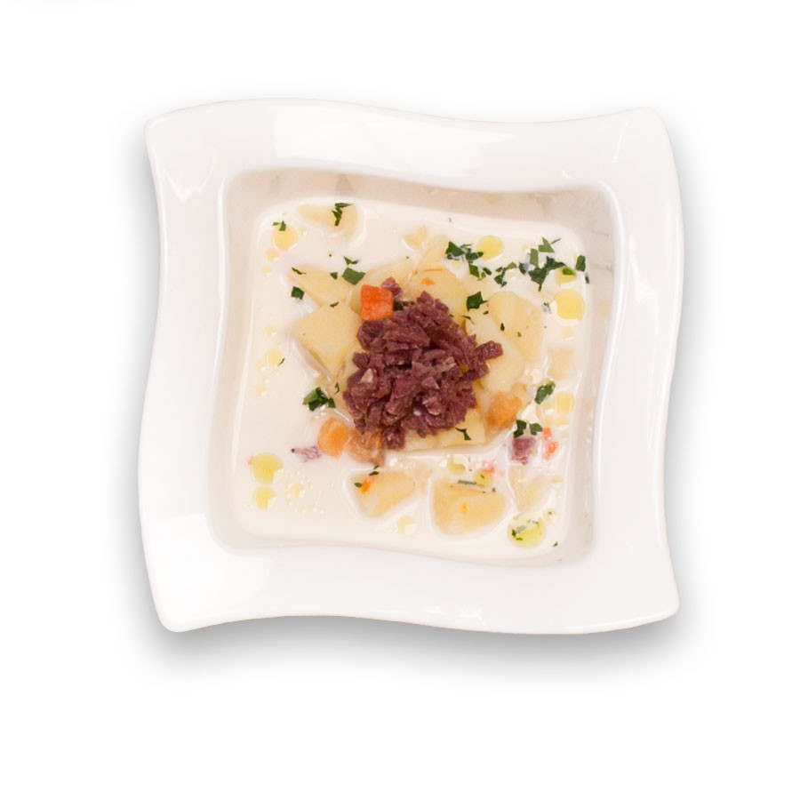 Kypsä nesteetön ainesseos maukkaiden liha- tai makkarapohjaisten keittojen valmistamiseksi, vakuumipakkaus. Tuote ei sisällä lisättyä nestettä. Keiton valmistusvaiheessa yhtä pakkausta kohden lisätään 2 l nestettä (esim. vettä) ja n. 700 g makkarakuutioita, kypsiä lihakuutioita tms., jolloin valmiin keiton määrä on 5,7 l.Lue lisää