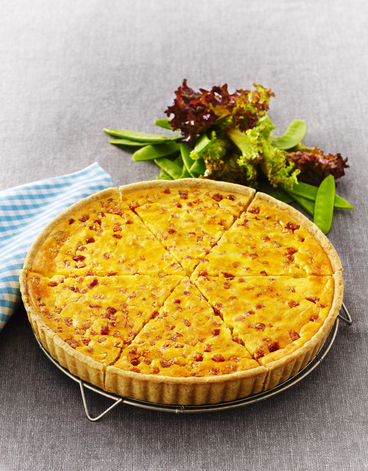 VEHNÄJAUHO, kasvirasva (rapsiöljy, kokonaan kovetettu rapsirasva), vesi, grahamjauho (VEHNÄ), KAURAHIUTALE, suola. MAITO, KANANMUNA, savustettu kinkku (sianliha, vesi, suola, stabilointiaine (E450), hapettumisenestoaine (E301), säilöntäaine (E250), savuaromi), JUUSTO, KERMA, muunnettu tärkkelys, mustapippuriuute, suola.