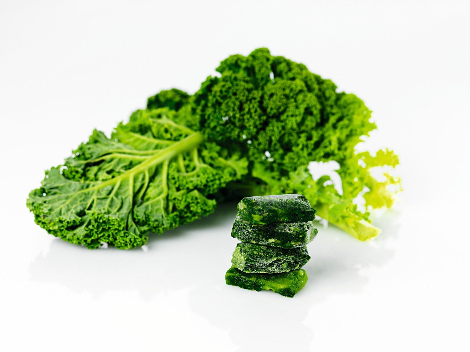 Esikeitetty, hienonnettu lehtikaali. Irtopakastettu paloina.