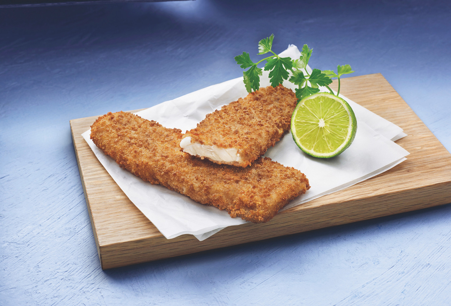 Vastuullisesti pyydettyä Alaskanseitifilettä leivitettynä rapeaksi täysjyväjauhoseoksella.