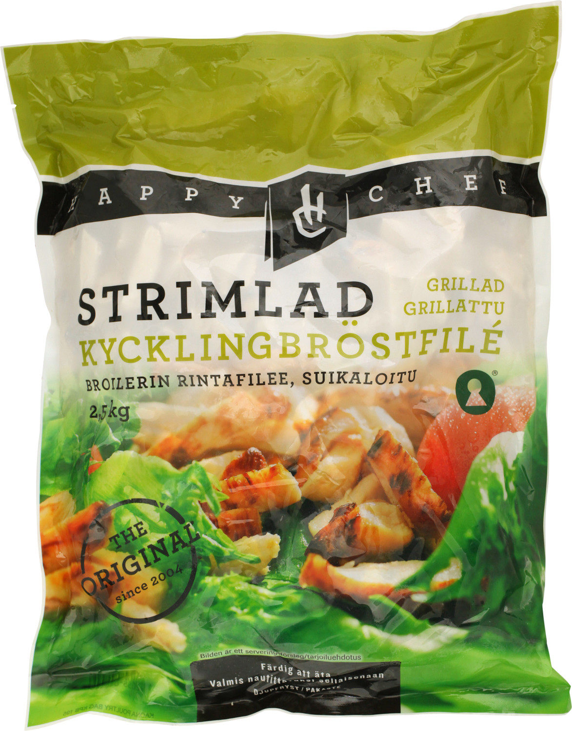- Happy Chef broilerin suikaloitu ja grillattu rintafile 2,5kg, kypsä pakaste halal