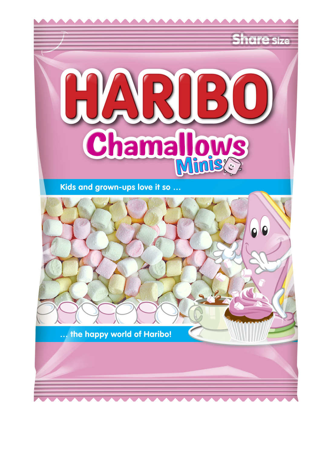 HARIBO Chamallows Minis vaahtokarkkipussi sisältää ihania värikkäitä minivaahtokarkkeja, joissa on perinteisten vaahtokarkkien täydellinen vaniljan maku pienessä koossa. Koristele leivonnaisesi tai ripottele kaakaokupillisen päälle, taataksesi maksimaalisen herkullisuuden. Pieni koko, maksimaalinen maku!