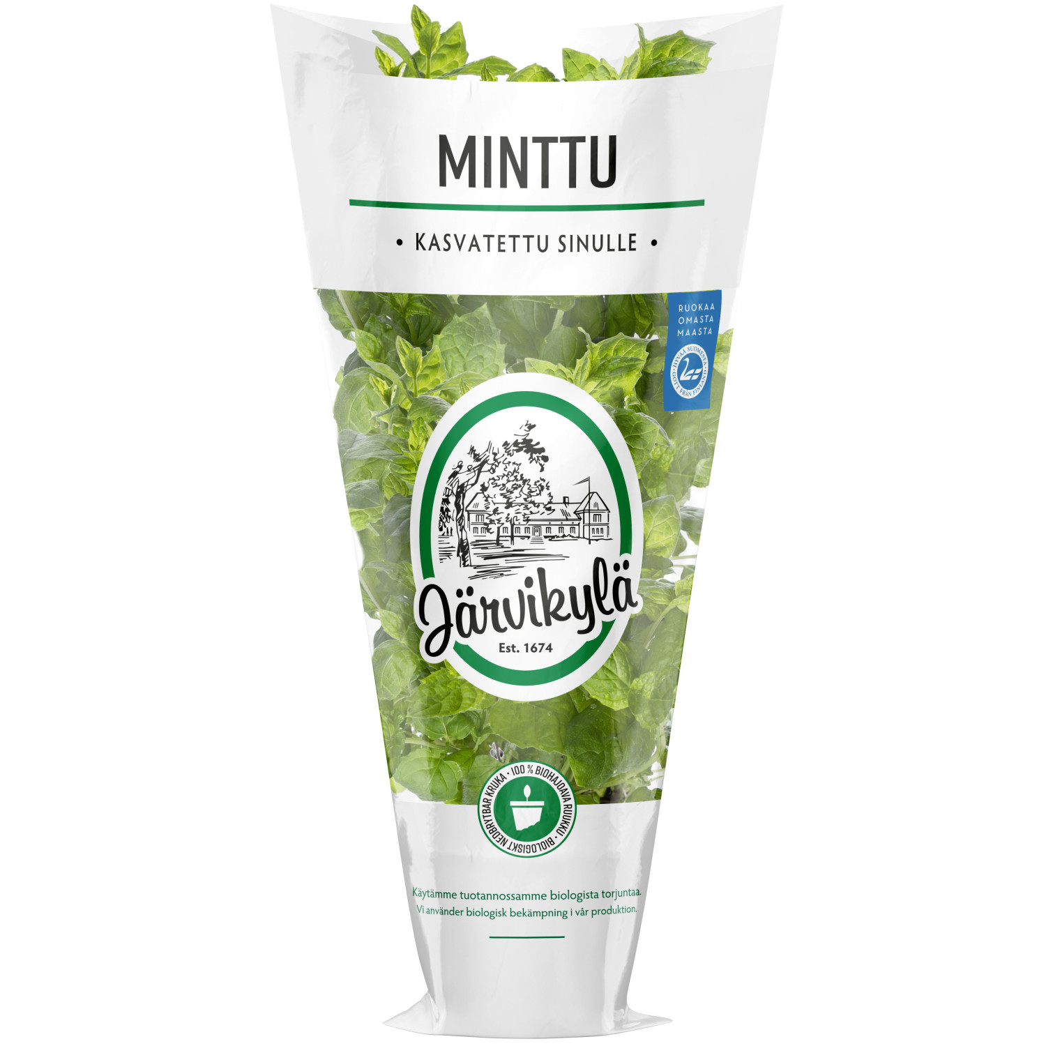 Suomalainen raikas ja tuuhea minttu. Hieno, pirteä maku ja kauniit lehdet sopivat myös jälkiruokiin, leivonnaisiin, hedelmäsalaatteihin ja juomiin. Järvikylä kannustaa kohti vihreämpää lautasta. Perheyrityksen juuret ulottuvat kartanoon, joka on ollut suvulla vuodesta 1674. Reseptit: www.jarvikyla.fi