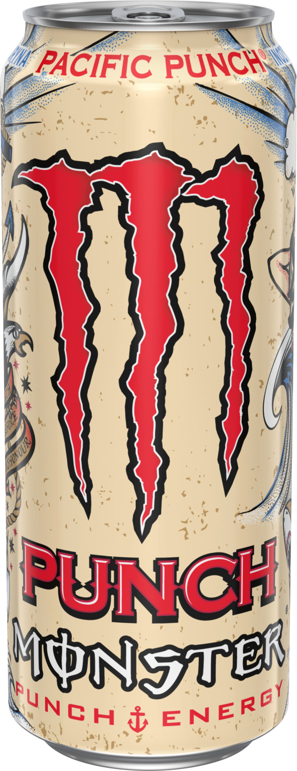 Monster Pacific Punch yhdistää energiajuoman klassikkomakuja ja on makea sekoitus appelsiinin, omenan, vadelman, kirsikan, guavan, ananaksen ja passionhedelmän aromeja. Monster Pacific Punch sisältää 6% mehua tiivisteestä ja on todellinen fruit punch! Tölkin design on saanut inspiraationsa 60-luvun perinteisestä ja ikonisesta tatuointityylistä ja tuo tälle Monsterin energiajuomalle myös taiteellisen ulkoasun. Makea tuulahdus energiaa sopii nautittavaksi niin kotona pelin ääressä kuin ulkona kavereiden ajanvietossakin tai milloin ikinä tarvitsetkaan Monster Energiaa!