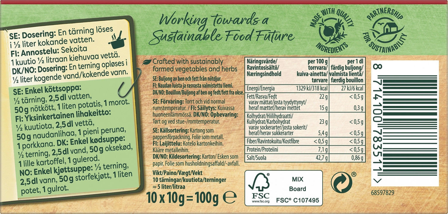 Annostelu: Sekoita 1 kuutio 1/2 litraan kiehuvaa vettä.