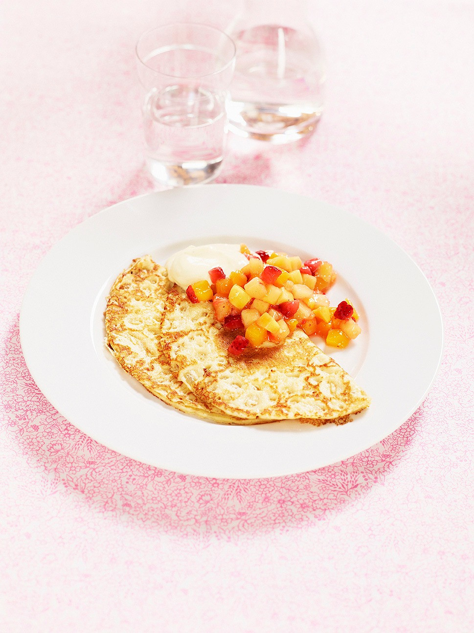 Laktoositon rasvaton MAITO, KANANMUNA, VEHNÄJAUHO, laktoositon rasvaton MAITOJAUHE, kasviöljy, jodioitu suola. Kasviöljyä (voiaromi) paistamiseen.