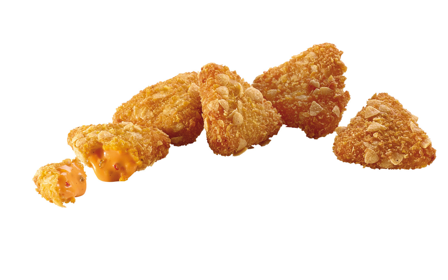 juustotäyte (44%, vesi, GOUDA-JUUSTO (9,5%), kypsytetty CHEDDAR-JUUSTO (5%), VOI, yrttisekoitus (dekstroosi, paprika (0,4%)), pippuri, luontainen aromi, kumina, inkivääri, kurkuma , oregano, meirami, sipuli, valkosipuli, suola, sitruunatiiviste, maltodekstriini, hiivauute, rypsiöljy), MAITOproteiini, muunnettu perunatärkkelys, emulgointiaineet (E331, E452), bambukuitu, happamuudensäätöaineet (E500, E330), stabilointiaine ( E461), suola, väri (E160b(i)), auringonkukkaöljy), korppujauho (27 %, VEHNÄJAUHO, suola, hiiva, kurkumajauhe, paprikajauhe, kurkumiinijauhe, väriaineet (E160c, E100 ), taikina (vesi, glukoosisiirappi, valkoinen sokeri (sokeri, inverttisokerisiirappi), VEHNÄjauho, dekstroosi, stabilointiaine (E466, E464), suola, VEHNÄproteiini), maissihiutaleet (10 %, maissi), auringonkukkaöljy, tortilla (5 %, maissijauho, VEHNÄjauho, suola, sokeri, stabilointiaine (E170), emulgointiaine (E471)).