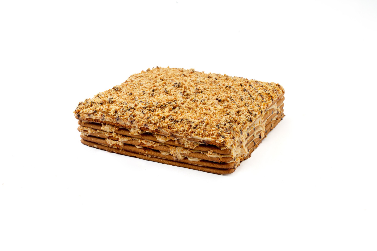 sokeri, margariini [palmuöljy*, vesi, täysin kovetettu kookosöljy, rypsiöljy, emulgointiaineet (rasvahappojen mono- ja diglyseridit, auringonkukkalesitiinit), suola, aromi, happamuudensäätöaine (sitruunahappo)], MAITO, riisijauho , pastöroitu KANANMUNA, glukoosisiirappi, hunaja 5 %, gluteeniton KAURAkuitu, SAKSANPÄHKINÄT 1,2 %, nostatusaine (natriumvetykarbonaatti), karamellisiirappi 0,4 %, VOI, psylliumkuitu 0,2 %, luontainen karamelliaromi, vähärasvainen kaakao, aromi. Saattaa sisältää jäämiä SOIJAsta. Ei lisättyjä säilöntäaineita tai väriaineita. * Kestävästä lähteestä.