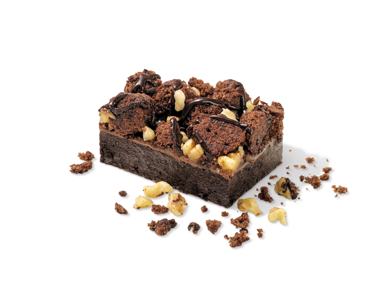 Karamelli-pähkinä Brownie (aiemmin Rockslide Brownie) on suklainen levykakku, jonka pohjan päällä on runsaasti meheviä suklaakakkupaloja, rapeita saksanpähkinöitä sekä karamelli- ja suklaakastiketta. Valmiiksi leikattu 16 annospalaan à noin 69 g. Vähälaktoosinen.