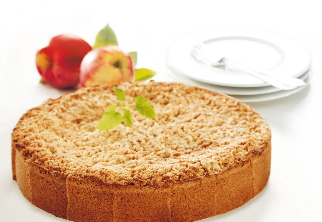 Näyttävä ja mehevä Omenamurukakku, jonka omenaisen (54 %) täytteen päällä on herkullista taikinamurua. Kakku on valmiiksi paloiteltu 16 x 125 g annospaloihin, kakun halkaisija on 25 cm. Omenamurukakkua voi tarjoilla myös lämmitettynä, vaikka jäätelön kera.