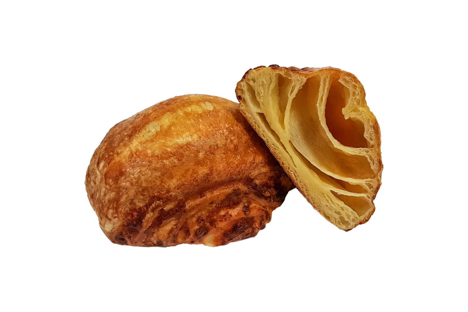 Hiivataikinarulla juustotäytteellä, päällystetty. Goudajuustoviipaleella.