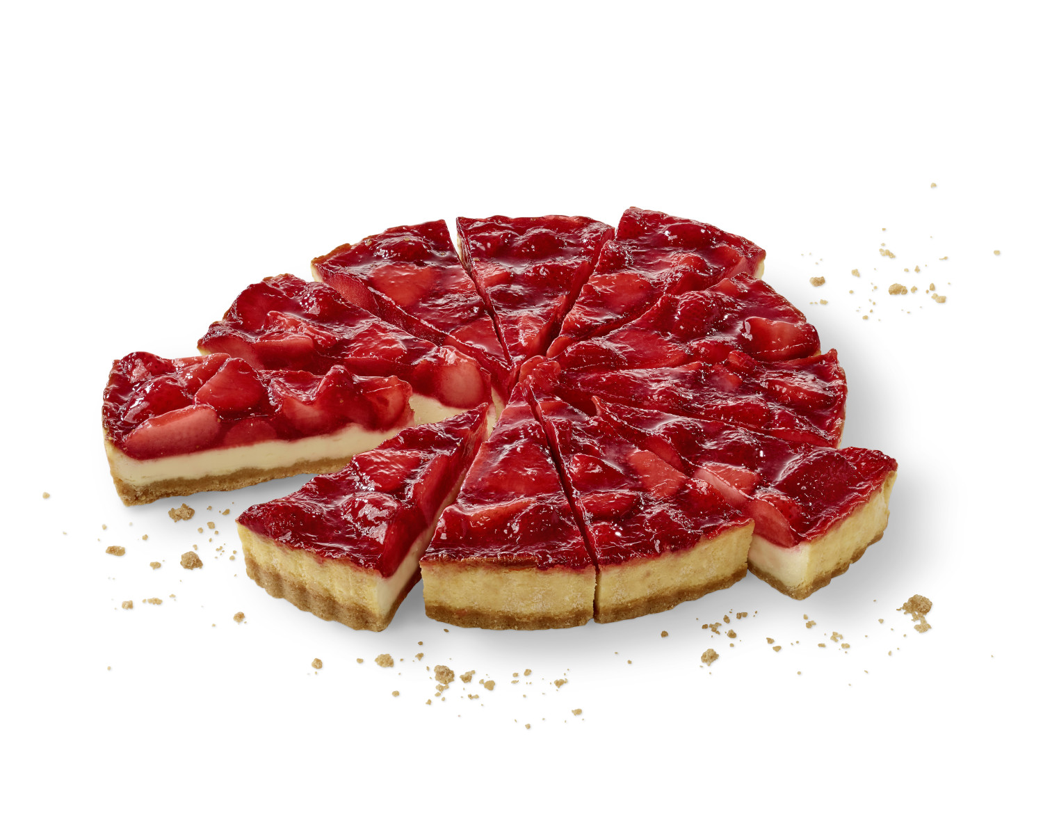 Mansikkajuustokakussa on herkullinen rapea keksipohja, sen päällä on paistettu täyteläinen amerikkalaistyylinen tuorejuustotäyte (20 %) ja pinnalla raikkaat mansikat (22 %) sekä kiille. Kakku on annospaloiteltu 12 x 120 g ja sen halkaisija on 24 cm. Näyttävä tarjottava ympäri vuoden.