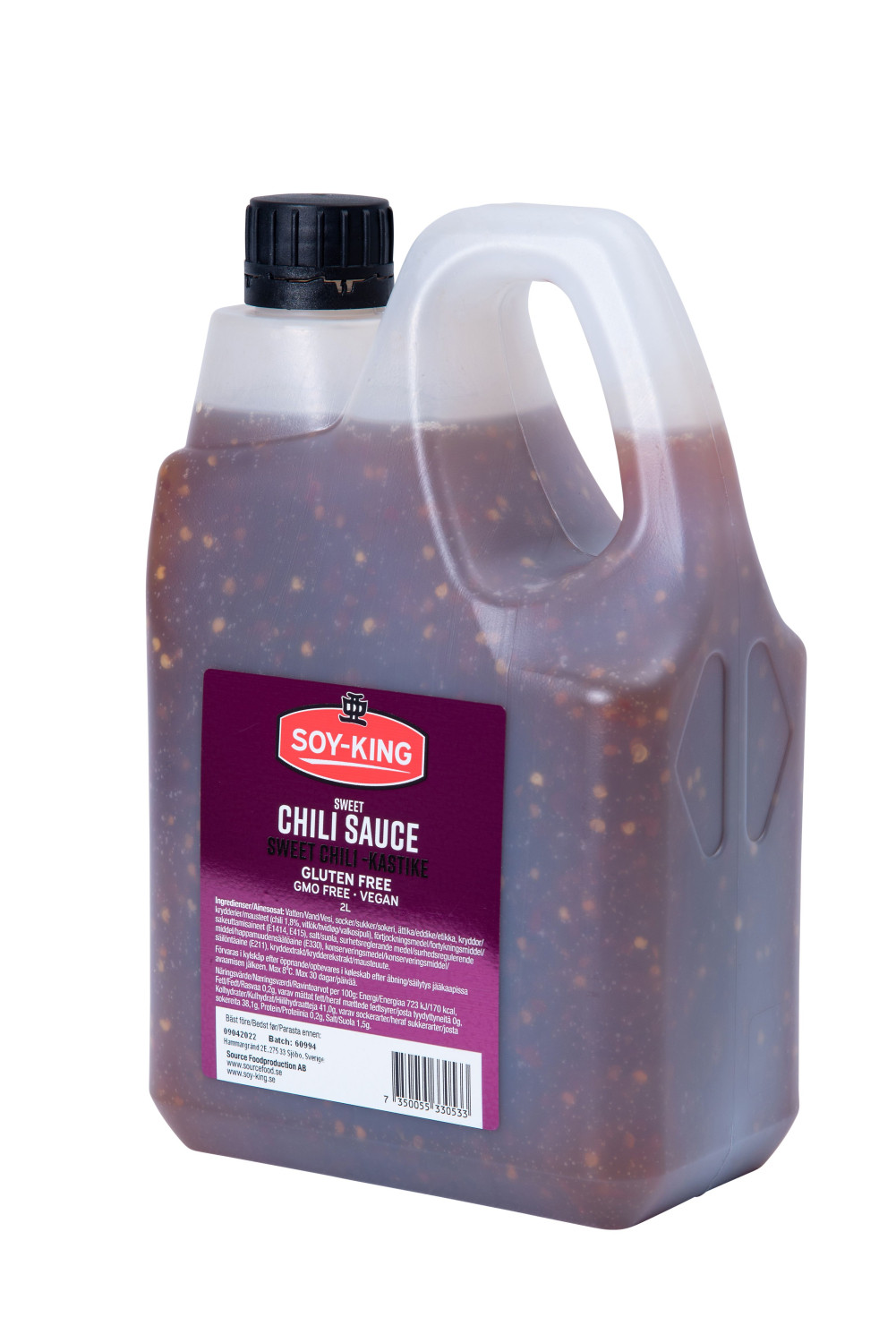 Soy-King Sweet Chili -kastike on makea, chilillä ja valkosipulilla maustettu kastike, joka sopii mainiosti lihan ja kasvisten kanssa sekä dippikastikkeena. Vahvasti chilinen maku.