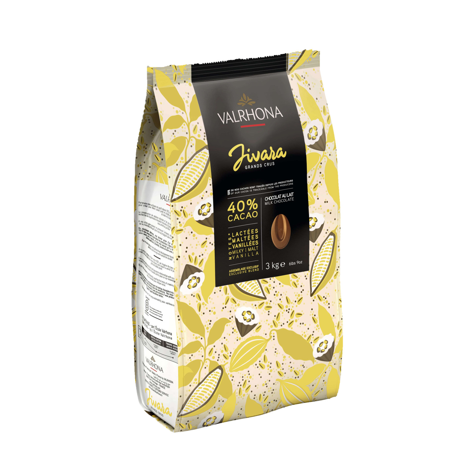 suomi Kaakaopitoisuus: väh. 40% Makuprofiili: maitoinen, mallas, vanilja Käyttökohteet: kuorrutus, mousse, konvehdit, patukat & levyt, jäätelö ja sorbetti Ranskalainen Valrhona on maailmankuulu premium-suklaanvalmistaja, joka valmistaa korkealaatuisia ja vastuullisesti tuotettuja suklaatuotteita Tain-l'Hermitagen kaupungissa Ranskan Hermitagessa. Laadukkaat suklaat ovat erityisen suosittuja huippuravintoloiden keittiöissä. Tuotteissa käytetyt kaakaopavut ovat jäljitettävissä viljemille saakka ja Valrhona on sitoutunut pitkiin yhteistyösuhteisiin kaakaoviljelijöiden kanssa. Valrhonalle on myönnetty B Corp-serfikaatti, joka osoittaa että yritys täyttää korkeimmat sosiaalisen ja ympäristövastuun standardit ja on sitoutunut niiden kehittämiseen.