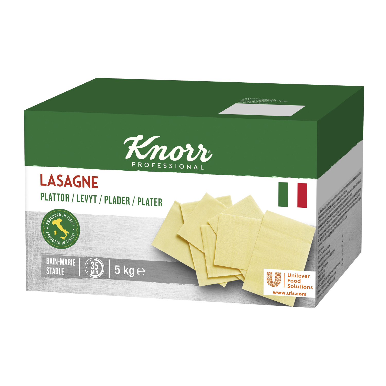 - Knorr 5kg Lasagnelevyt GN-mitoitettuja pastalevyjä