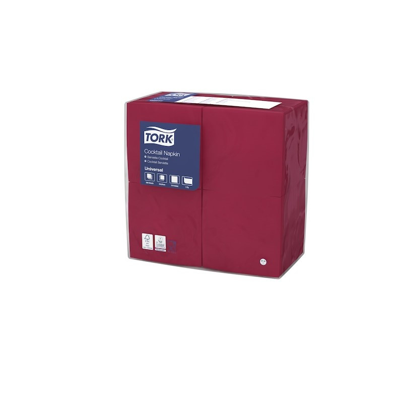 - Tork Cocktail/kahviliina Viininpunainen 500kpl/24cm 1krs 1/4taitto