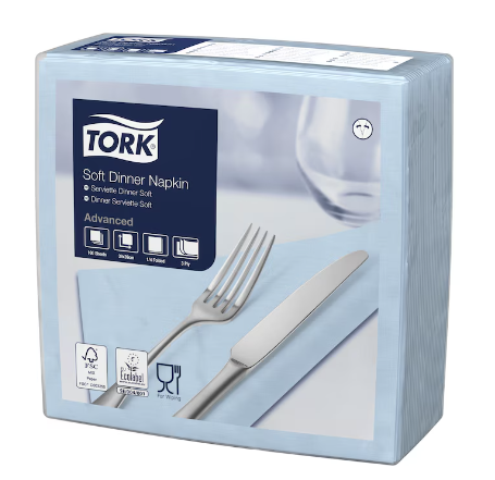 - Tork Soft vaaleansininen Dinner-lautasliina 3-krs 39cm 100kpl