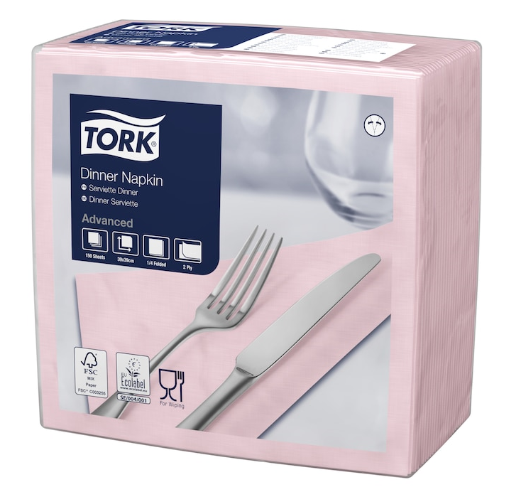 - Tork vaalea pinkki Dinner lautasliina 39x39, 150kpl 2-krs, 1/4-taitto
