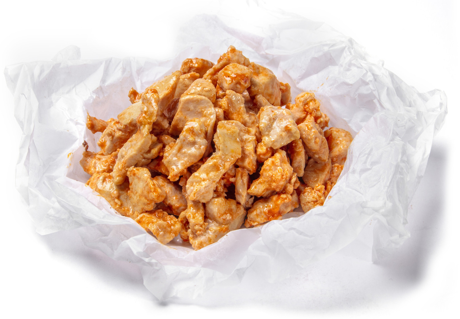 broilerin filee, vesi, jodioitu suola, etikka, mausteet (paprika, korianteri, juustokumina, kurkuma, sarviapila, fenkoli, mustapippuri, cayenne, inkivääri), dekstroosi, muunnettu maissitärkkelys, sokeri, aromit, kaliumkloridi, sakeuttamisaineet (guarkumi, ksantaanikumi), happamuudensäätöaine sitruunahappo, maltodekstriini, rypsiöljy. Broilerinlihan alkuperä Suomi. 100 g tuotetta on käytetty 108 g lihaa