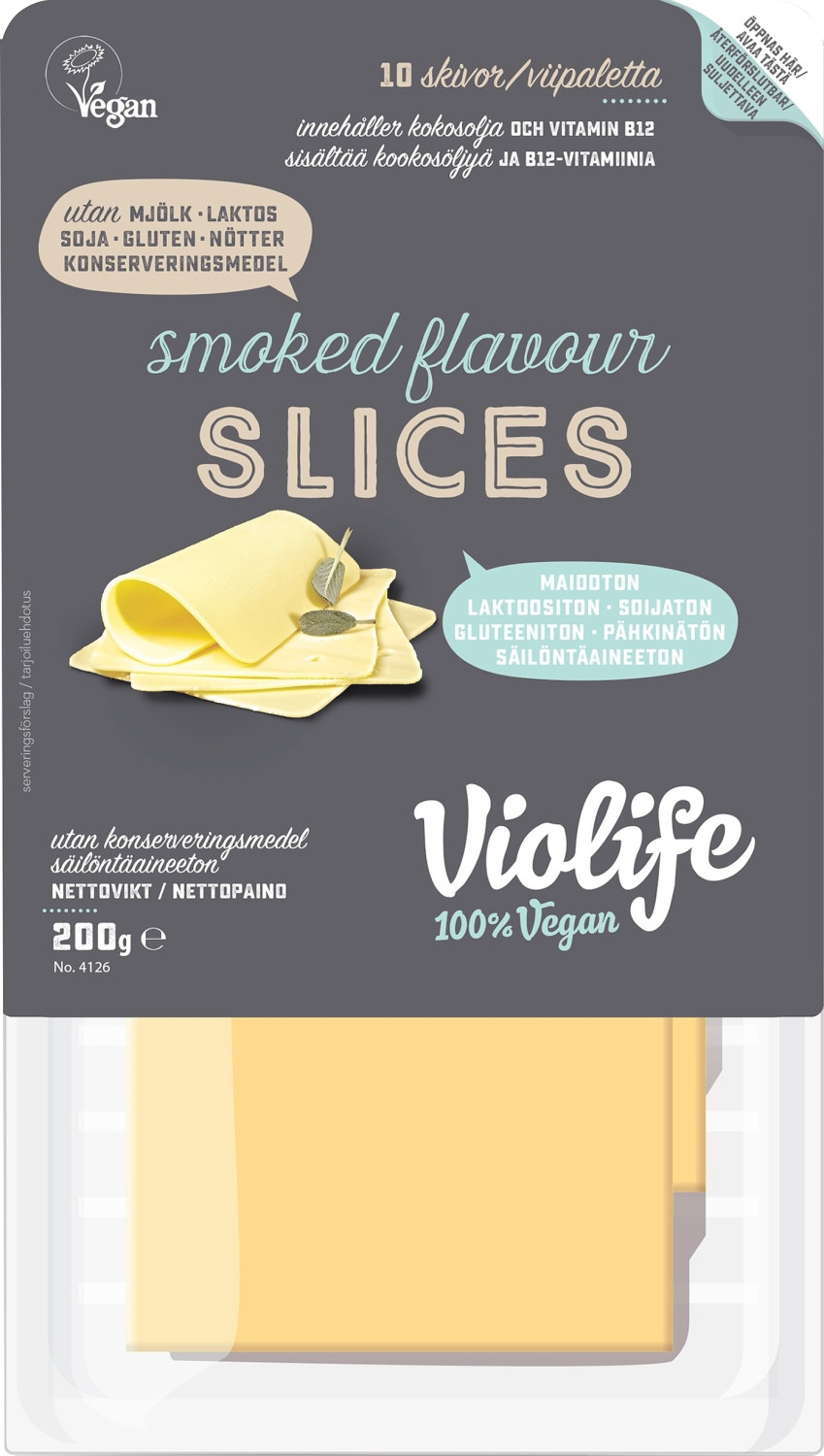 Violife Smoked Flavour Slices on valmiiksi viipaloitu kasvipohjainen vaihtoehto juustolle. Se sulaa kauniisti ja siinä on herkullinen, savustettu maku, joka sopii hampurilaiselle tai lämpimälle paahtoleivälle. Violife Smoked Flavour Slices on 100 % kasvipohjainen eikä se sisällä maitoa, laktoosia, soijaa, gluteenia, pähkinöitä tai säilöntäaineita.