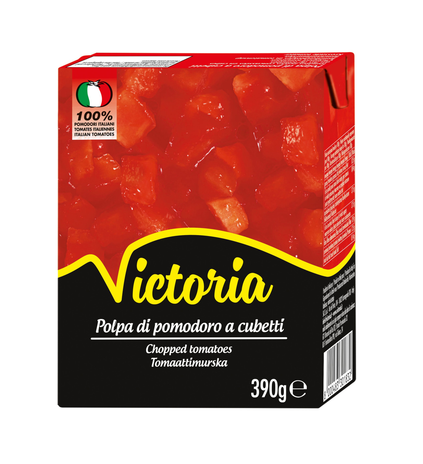 Tomaattia 60%, tomaattimehu, happamuudensäätöaine: sitruunamehu.