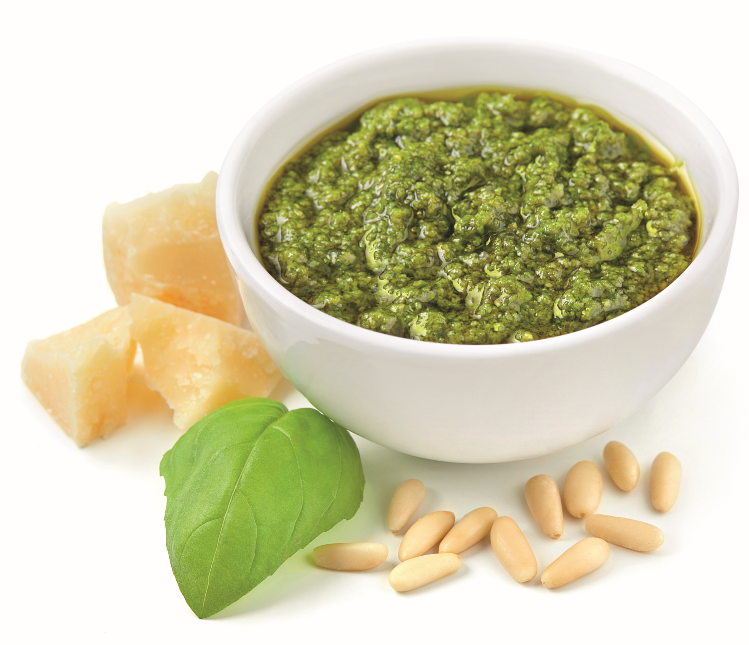 Genovese basilika DOP 34,5%, extraneitsytoliiviöljy, auringonkukkaöljy, raastettu kypsä juusto (MAITO, suola, juoksute), ricotta (MAITOhera, MAITO, suola, sitruunahappo), pinjansiemen, suola, hapettumisenestoaine (E300), happamuudensäätöaine (E330), kuivattu valkosipuli. Gluteeniton. Pähkinätön (sis. pinjansiemeniä).